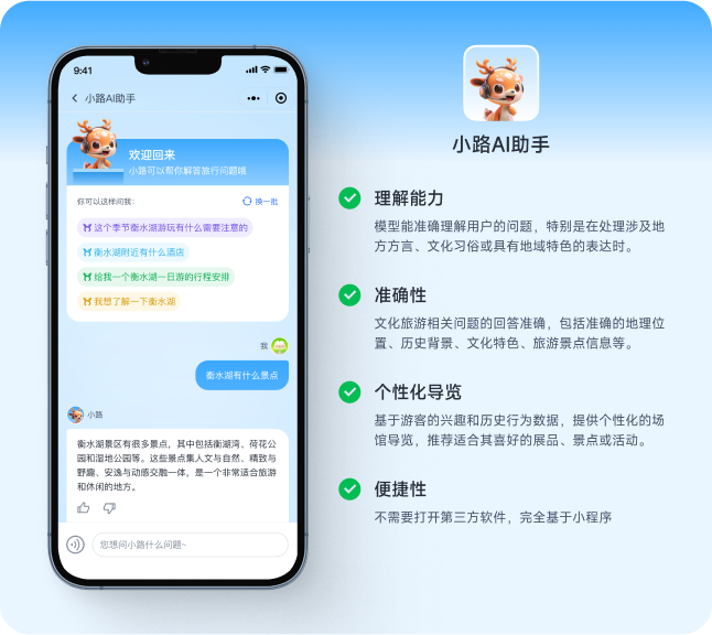 AI文旅行業模型是一款綜合性人工智能應用,旨在提升旅游體驗和優化內容創作?;诖竽P蜕墒街悄軉柎?、個性化伴游助手、行文助手(標題取名、文章潤色、文章摘要、關鍵詞提取)、圖像識別、文轉語音等。